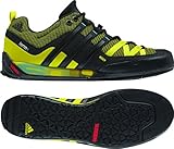MEN'S ADIDAS Terrex Solo outdoor shoe features a high-abrasion mesh and synthetic upper for maximum durability and comfort. Comfortable synthetic lining. High-traction toe cap for extra grip and improved toe protection. TPU coated midsole for durability. Protection plate protects the foot against roots and rocks. ADIPRENE under the heel for superior cushioning at impact. Approach-specific TRAXION outsole with climbing zone and hiking heel.